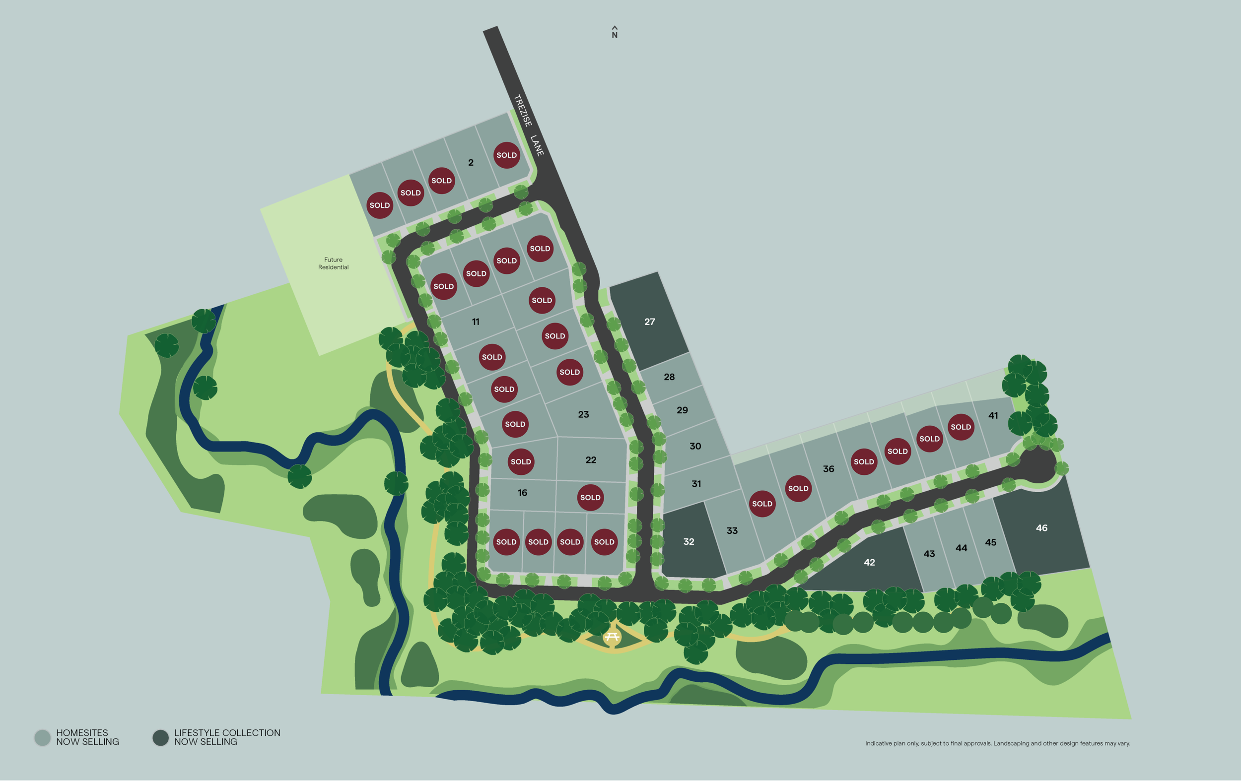 45 generous homesites with space for your new home.